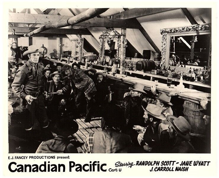 Canadian Pacific 1949 Randolph Scott and cowboys in saloon bar 8x10 inch photo
