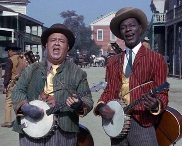 Cat Ballou 1965 Nat King Cole & Stubby Kaye play banjos in street 8x10 photo