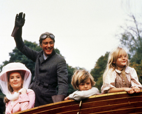 This image is from Chitty Chitty Bang Bang and features Dick Van Dyke as Caractacus Potts, Adrian Hall as Jeremy Potts, Sally Ann Howes as Truly Scrumptious and Heather Ripley as Jemima Potts available in multiple sizes. Your satisfaction guaranteed.