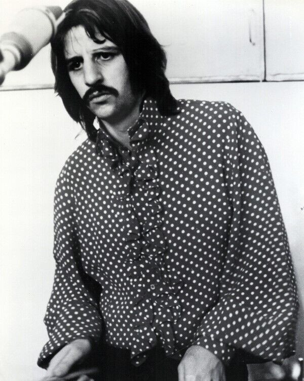 George Harrison 1970 Let it Be in recording studio in polka dot shirt 8x10 photo