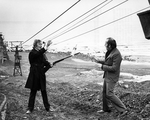 IAN HENDRY MICHAEL CAINE WITH RIFLE ON NEWCASTLE BEACH GET CARTER PRINTS AND POSTERS 195751