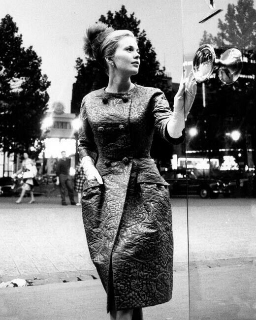Jean Seberg candid pose looking chic in long coat 8x10 inch photo