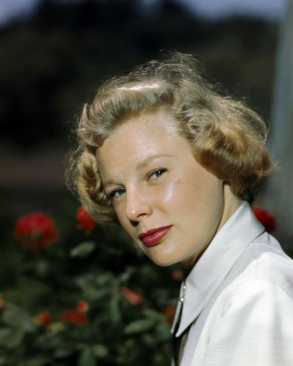 June Allyson 1940's era outdoor portrait in white blouse red lipstick 8x10 photo