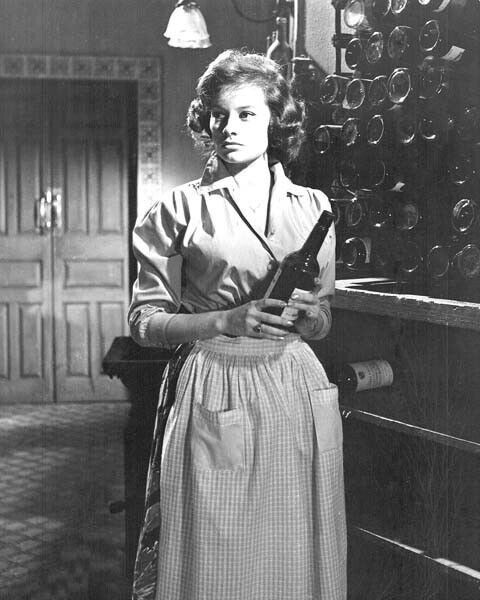 Luciana Paluzzi holds bottle of wine 1958 Tank Force movie 8x10 inch photo