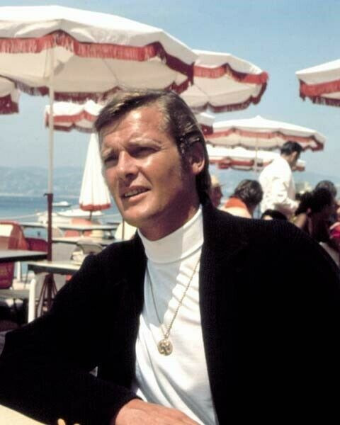 Roger Moore on French Riviera by ocean as Brett The Persuaders 8x10 inch photo
