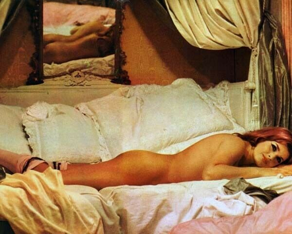Senta Berger lies on bed wearing stockings 8x10 inch photo