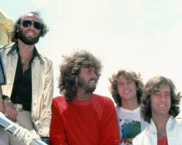The Bee Gees rare of the four Gibb brothers smiling for cameras 8x10 inch photo
