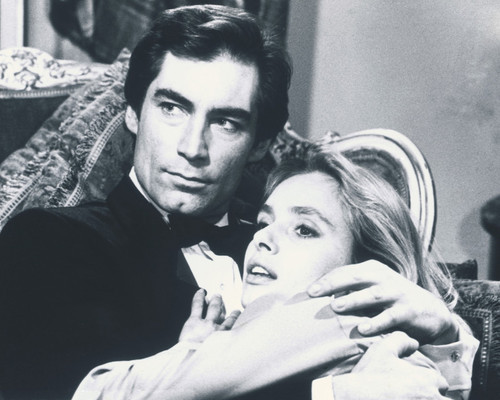 This image is from The Living Daylights and features Timothy Dalton as James Bond and Maryam d'Abo as Kara Milovy available in multiple sizes. Your satisfaction guaranteed.