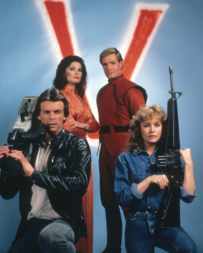 This image is from V and features Jane Badler as Diana, Faye Grant as Dr. Julie Parrish and Marc Singer as Mike Donovan available in multiple sizes. Your satisfaction guaranteed.