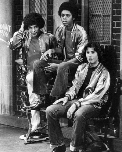 This image is from Welcome Back, Kotter and features Robert Hegyes as Juan Epstein, Lawrence Hilton-Jacobs as Freddie 'Boom Boom' Washington and John Travolta as Vinnie Barbarino available in multiple sizes. Your satisfaction guaranteed.
